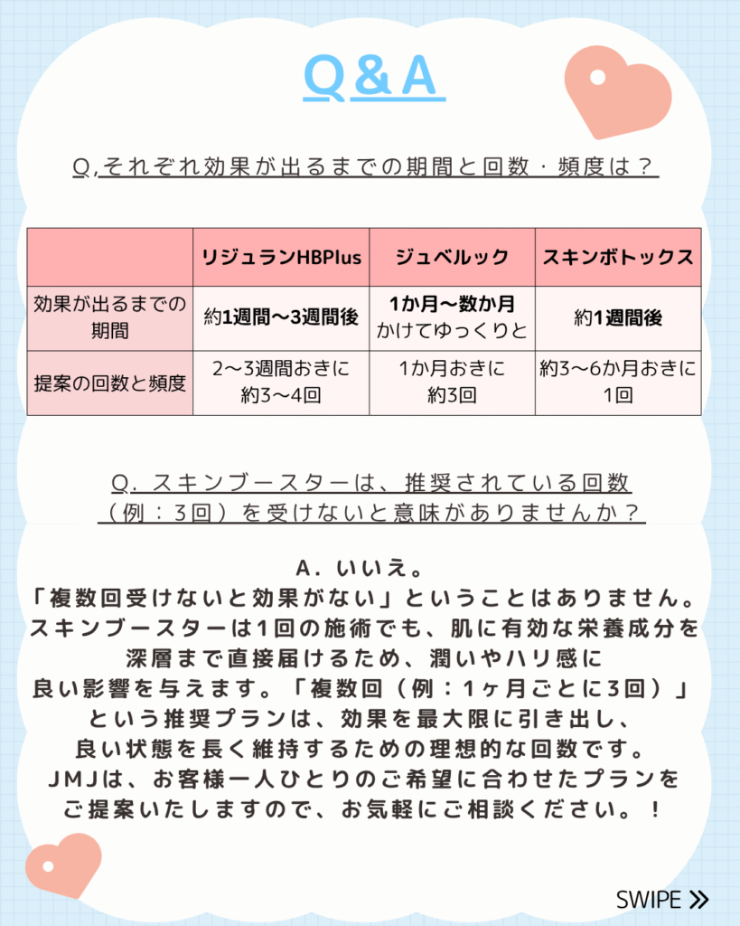 最近、お客様から「韓国で流行っているスキンブースターって何ですか?」「リジュランとジュベルック、私にはどっちが合いますか?」といったご質問を非常に多くいただきます。