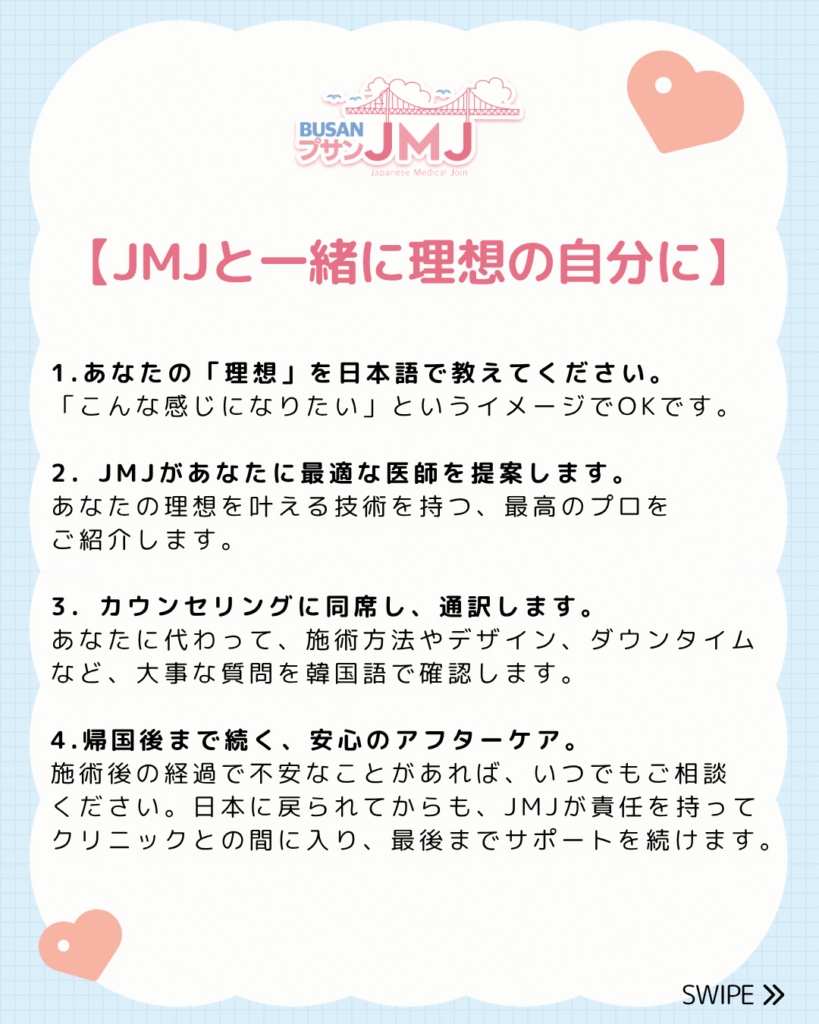 あなたの理想を120%叶えるための、韓国美容専門パートナーとして、JMJがあなたの美の旅を全力でサポートします。